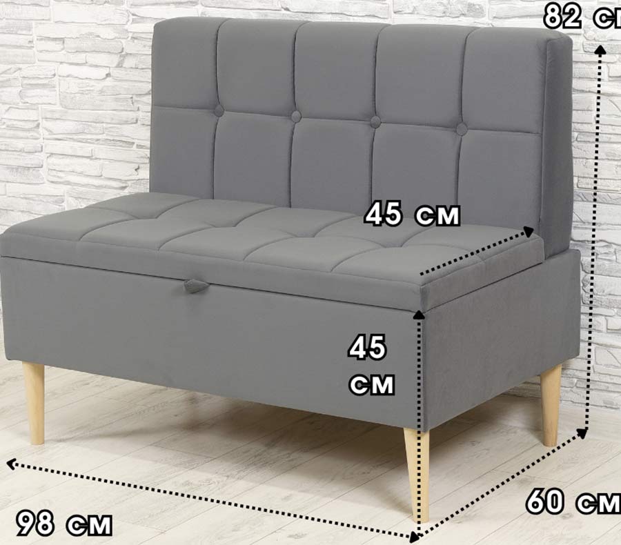 Ширина лавки всего 98 см, она легко встанет на балкон, в лоджию, на веранду, в прихожую, в коридор, в маленькую кухню, в зону ожидания. Ткань изделия микровелюр (велюр). Все материалы гипоаллергенны и безопасны для здоровья.