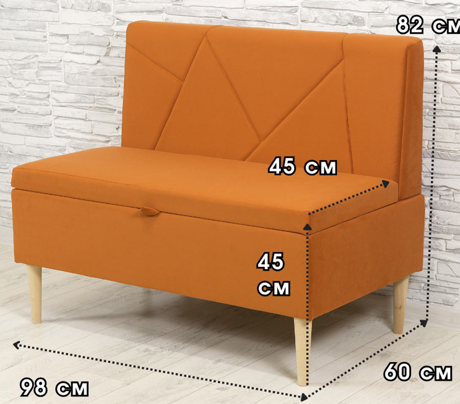Геометрическая прострочка придаёт дивану изысканный шарм, который станет украшением любого интерьера. Он не только функционален, но и красив! Ящик для хранения позволяет хранить вашу кухонную утварь, которой не часто пользуетесь, закрутки, технику, принадлежности для вашей работы, если вы поставите лавку к себе в офис, а так же данный диван подойдет в детскую для хранения игрушек, одежды, одеяла, постельного белья или других вещей, делая вашу жизнь более организованной и удобной.