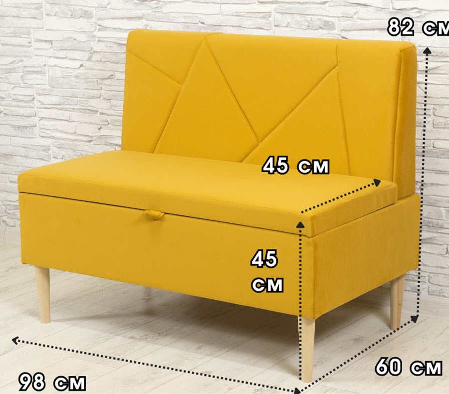 Геометрическая прострочка придаёт дивану изысканный шарм, который станет украшением любого интерьера. Он не только функционален, но и красив! Ящик для хранения позволяет хранить вашу кухонную утварь, которой не часто пользуетесь, закрутки, технику, принадлежности для вашей работы, если вы поставите лавку к себе в офис, а так же данный диван подойдет в детскую для хранения игрушек, одежды, одеяла, постельного белья или других вещей, делая вашу жизнь более организованной и удобной.