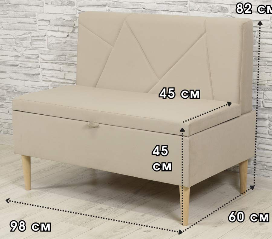 Геометрическая прострочка придаёт дивану изысканный шарм, который станет украшением любого интерьера. Он не только функционален, но и красив! Ящик для хранения позволяет хранить вашу кухонную утварь, которой не часто пользуетесь, закрутки, технику, принадлежности для вашей работы, если вы поставите лавку к себе в офис, а так же данный диван подойдет в детскую для хранения игрушек, одежды, одеяла, постельного белья или других вещей, делая вашу жизнь более организованной и удобной.