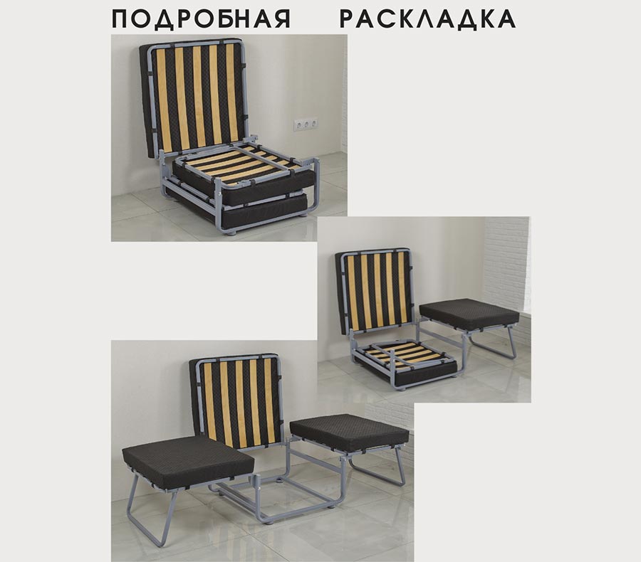 Пуф-трансформер - это отличное решение, если к Вам часто приходят ночевать знакомые и родственники. Раскладушка подойдет для гостей любого возраста. Данная кровать подходит для детей благодаря легкой раскладке. Надежная металлическая конструкция выдержит человека любого веса! Максимальная нагрузка на раскладушку более 200 кг.